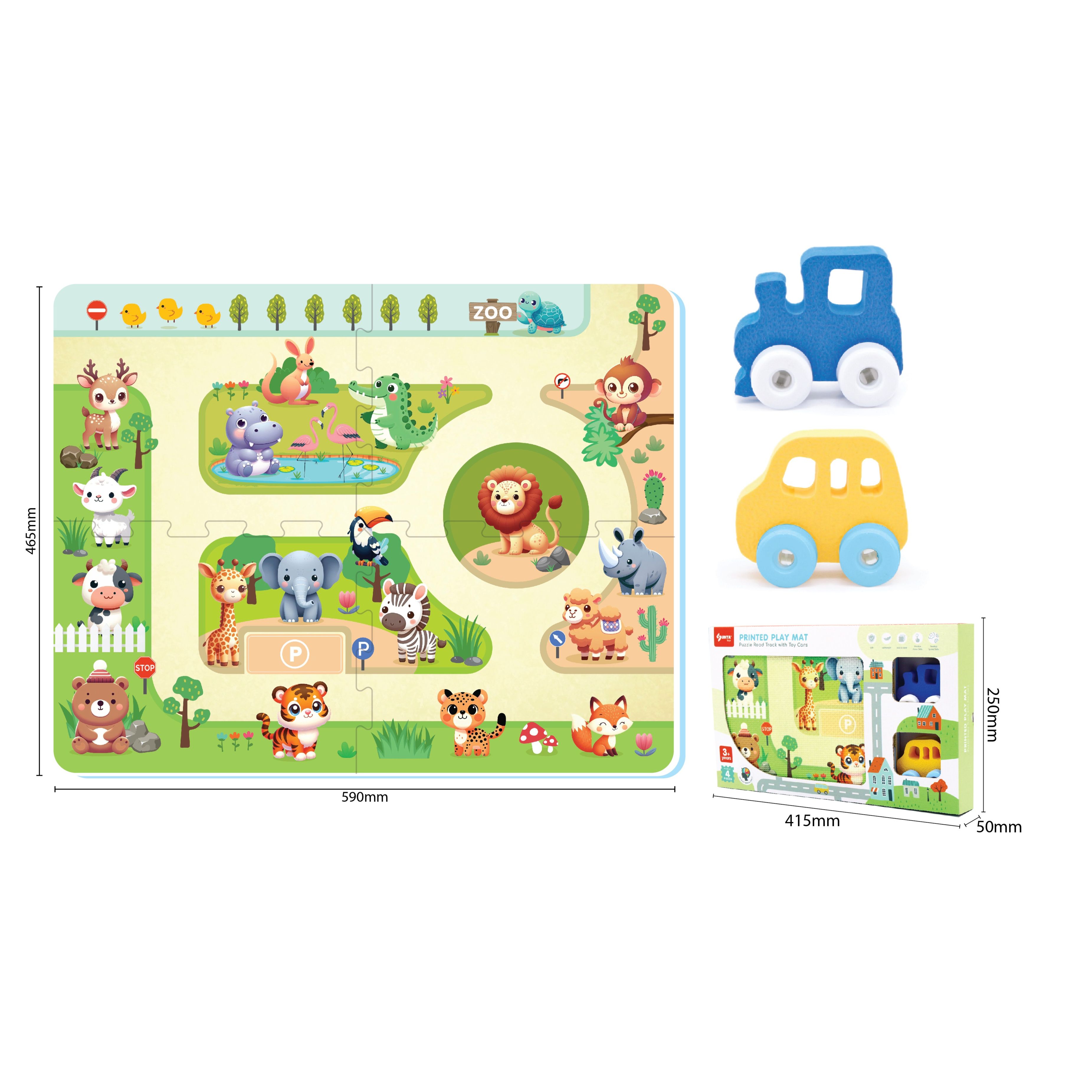 3433V-SUNTA-HEAT TRANSFERRED PRINTING EVA PUZZLE MAT- SAFARI ROAD TRACK W/TOY FOAM CAR