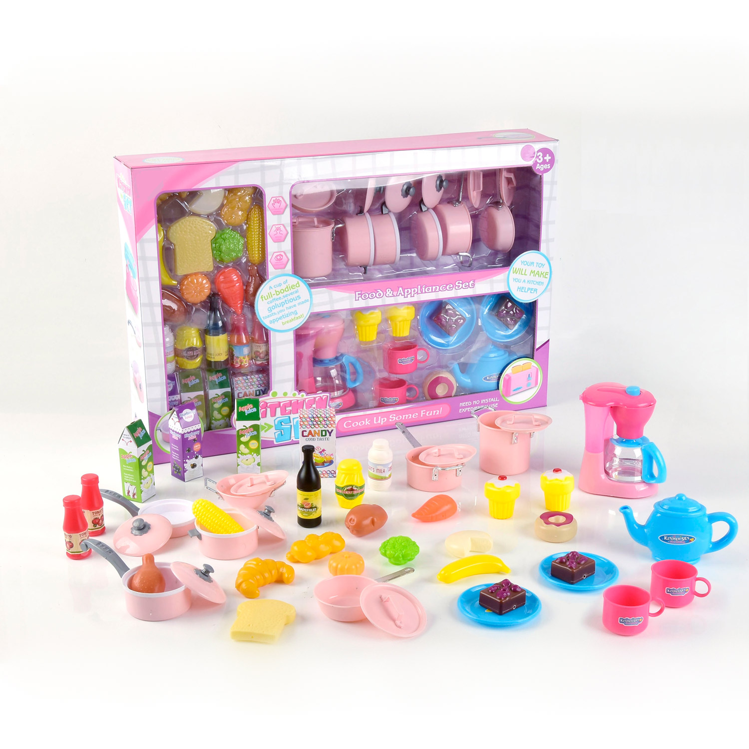 A realistic set with various kinds of cookware & foods, great for children to experience cooking fun