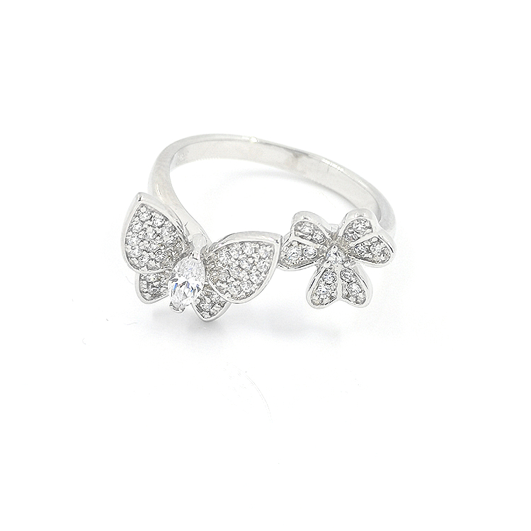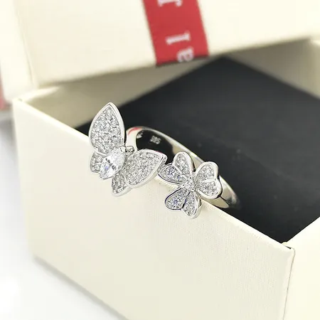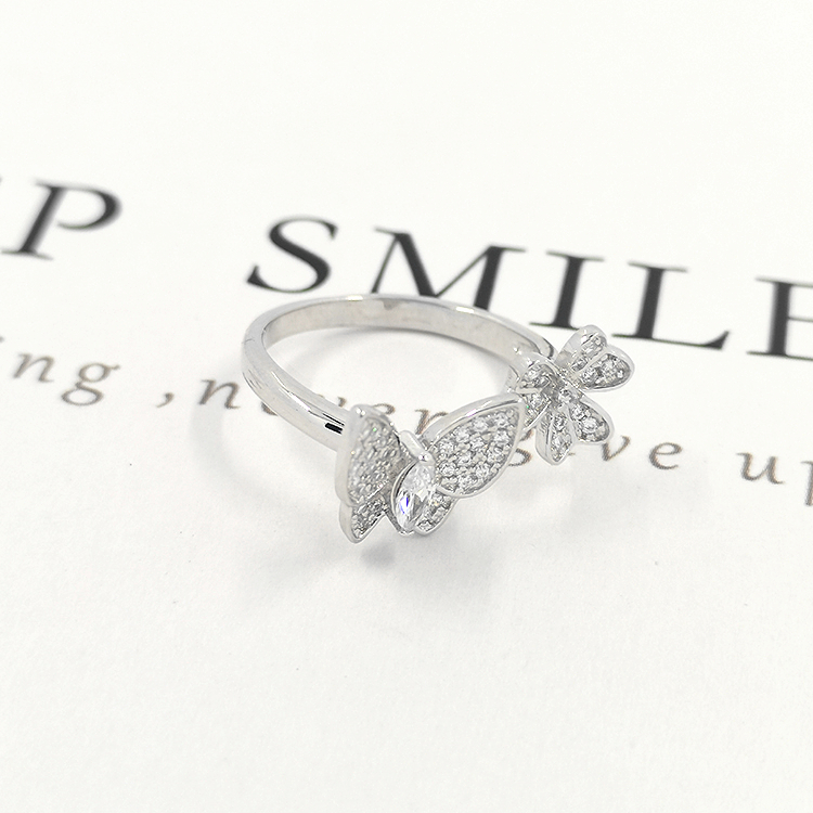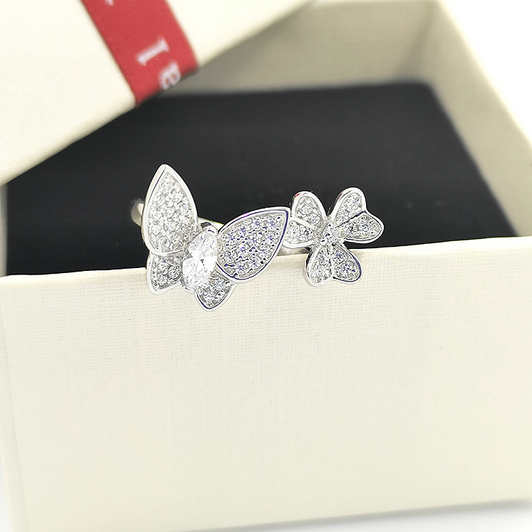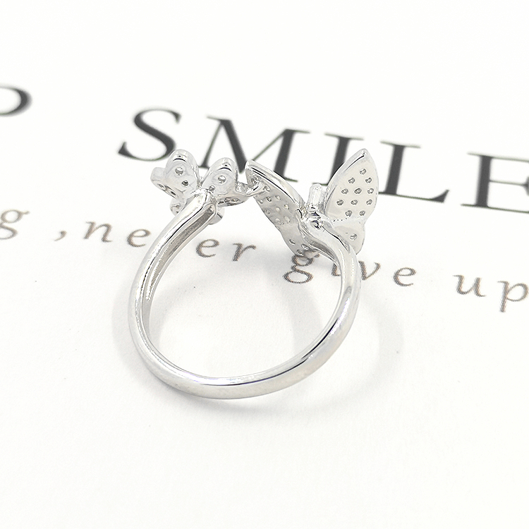 3A Cubic Zircon Rings For Girls Silver Leaf Butterfly Rings Jewelry Women