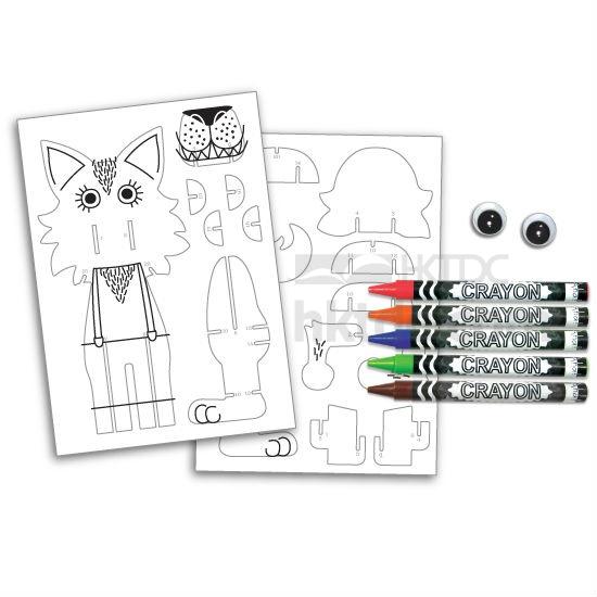 • Package includes 2 pre-cut chipboards, 5 color crayons, 2-3 google eyes and 1 play scene