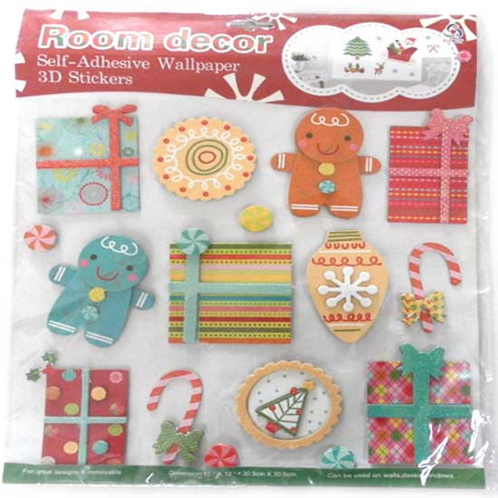 This pack of wall stickers feature textured designs that give fun and style instantly. The lovely Christmas-theme images, like gingerbread men and gifts, are sure to delight eyes. The self-adhesive stickers do not do harm to your wallpaper or wall paint.