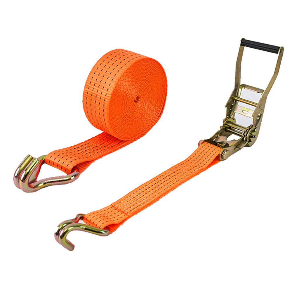 - Heavy duty ratchet strap with double steel hook which has high hardness, not easy to fall off and fastens instantly