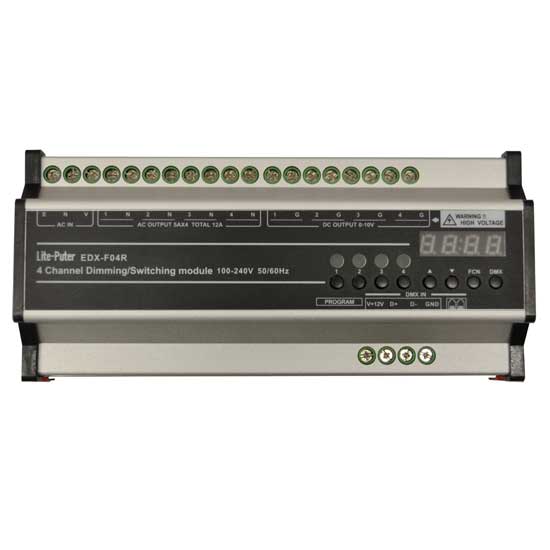 Featured here is a four-channel light dimmer module designed for incandescent or fluorescent lamps. Delay time can be set for AC output from 1 to 99 seconds. The fully functional light dimmer can control up to 99 zones.