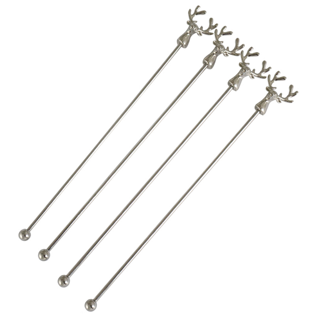 4 Pcs Deer Head Shaped Swizzle Stick Set includes the following features :