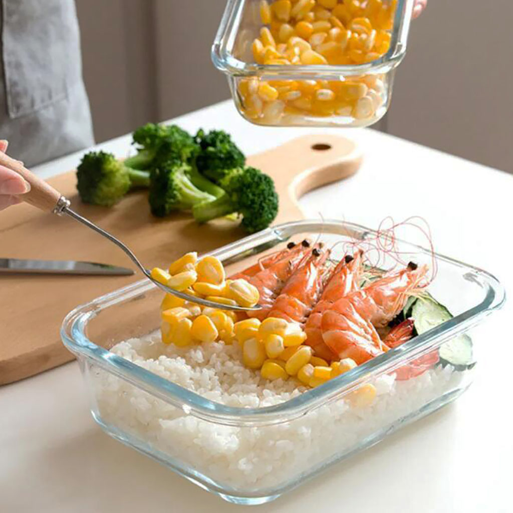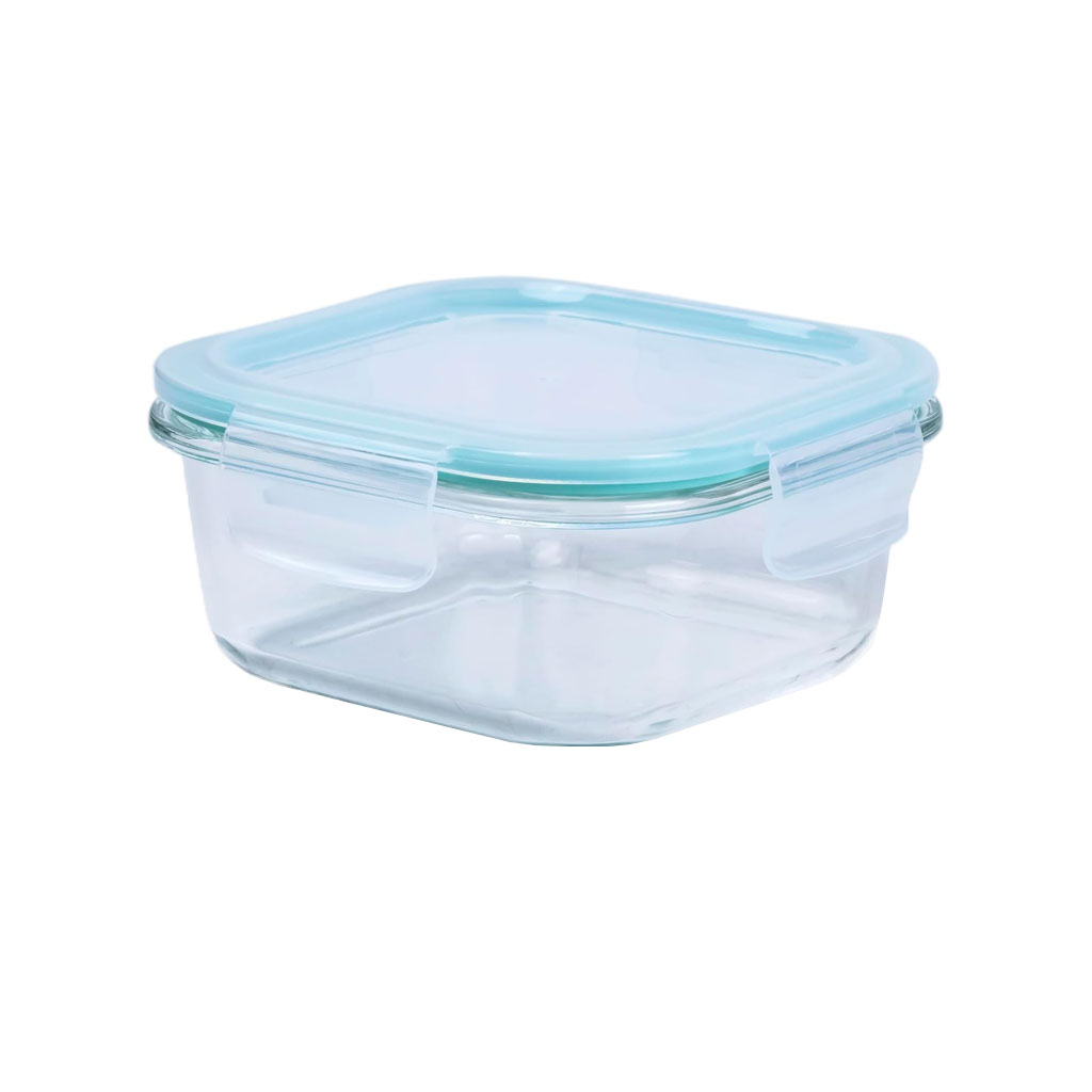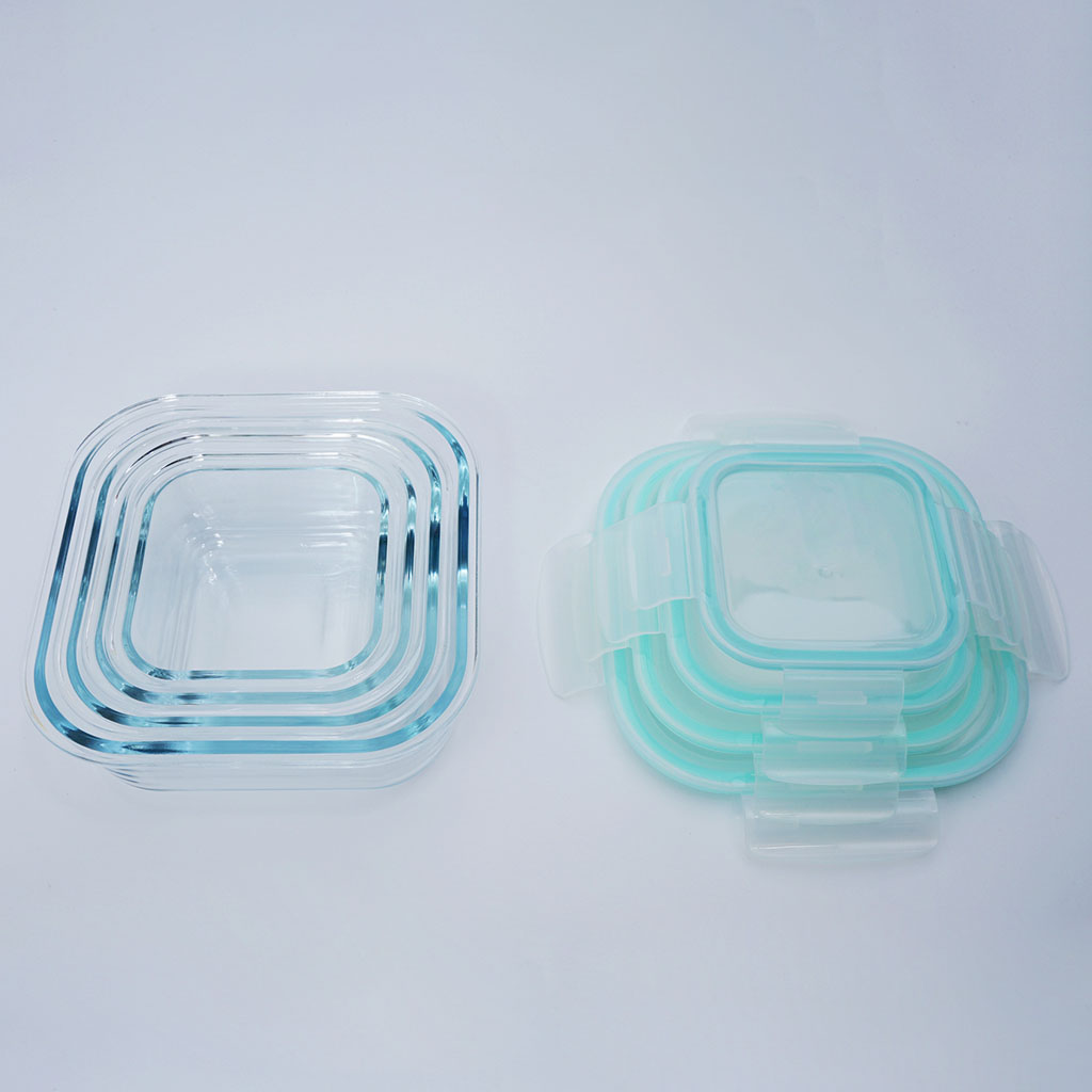 4 Pcs Square-shaped Glass Airtight Crisper Set with Plastic Locking Lid includes the following features :