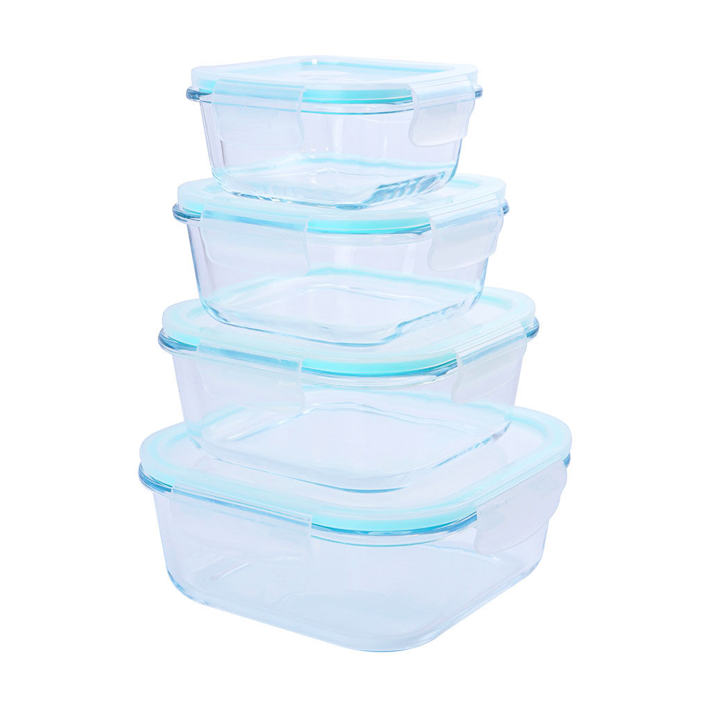 4 Pcs Square-shaped Glass Airtight Crisper Set w/ Plastic Locking Lid