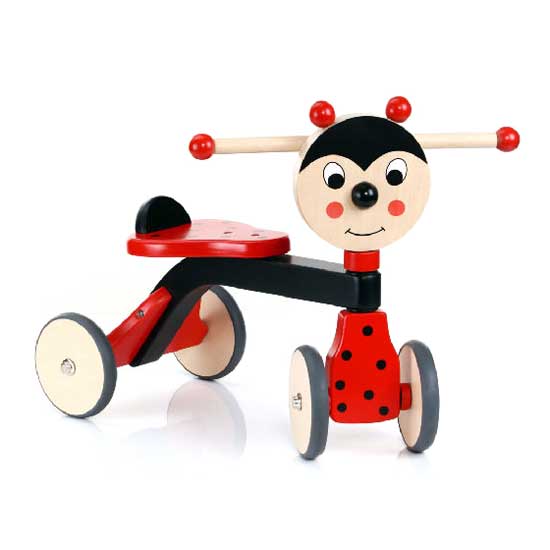 This attractive 4-wheel training bike grabs kids’ attention with the cute clown-like design in brilliant red and black colors. It features a birch plywood core and a beech veneer cover with varnish coatings. This good quality bike is ideal for training the balance of 2-7 years old kids.