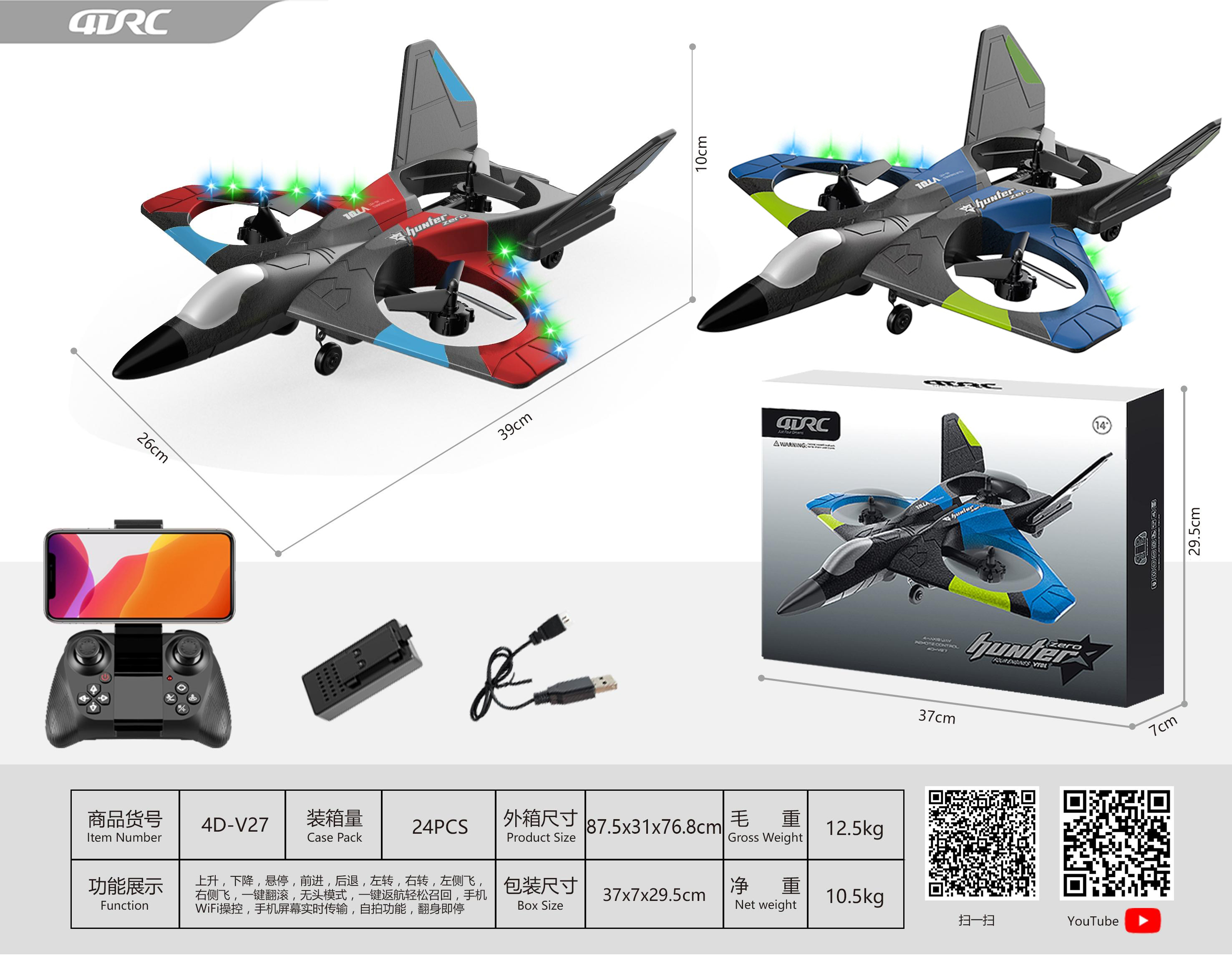Function: One key take-off/landing, Forward/backward, Turn left/right, Left/right side-flying, Ascent/descent, Altitude hold, Auto hover/flip, Headless mode, Roll over to stop. (Only Available for Camera Option, WiFi camera with selfie, APP FPV real time transmission)