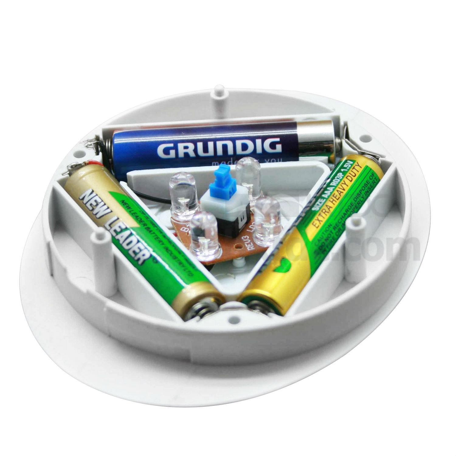 With double-sided stickers can be attached to a wall or closet without locking easy to use, 4 LED high brightness just one click you can make switch. Suitable for mechanical repair / emergency use / temporary lighting. Use AAA battery x 3 (to be owned, not included). Size: 9 x 7cm.