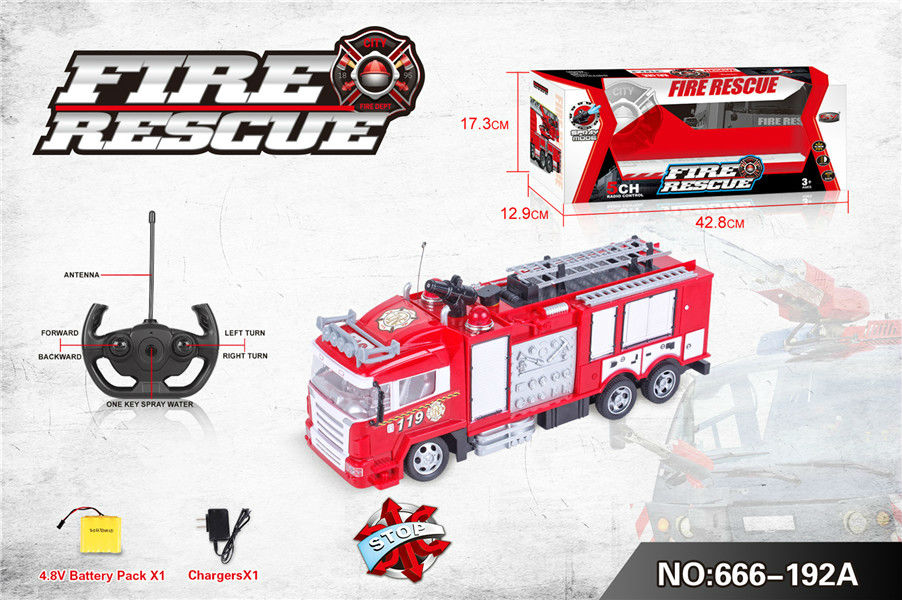 5 Channel R/C Water Spray Fire Engines With Lights & Music Battery