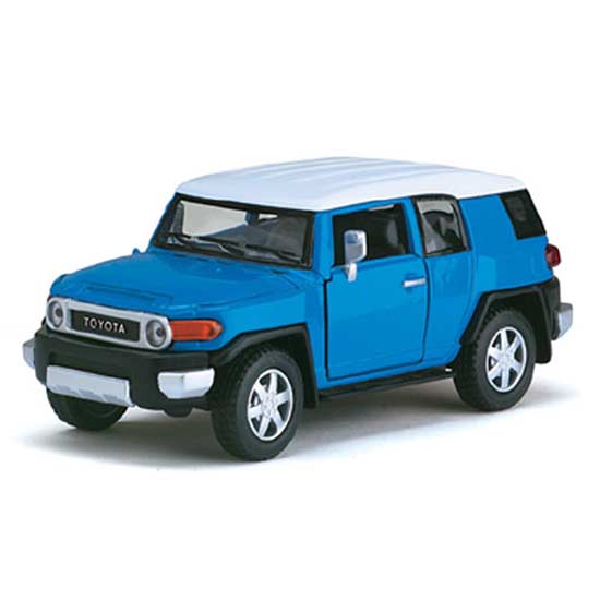 The 5" die-cast metal car features the design of a Toyota FJ Cruiser with pull-back action. It boasts a realistic design and the doors can be opened. This 5" die-cast metal scale model car is a great addition for your scale automobile collectibles.