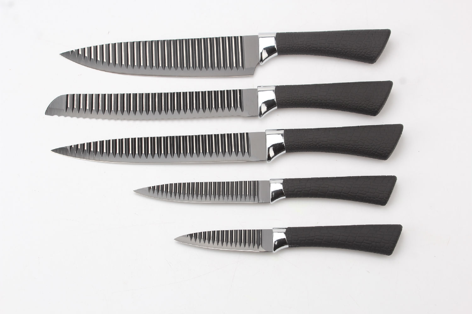 , 8”chef knife 1.8mm 8”slicer knife 1.8mm 8”bread knife 1.8mm 5”utility knife 1.2mm 3.5”paring knife 1.2mm