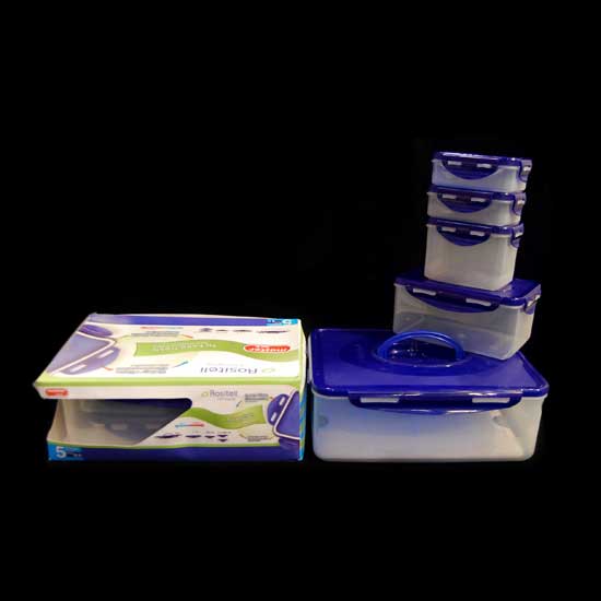 This set includes 5 rectangular storage boxes in graduated sizes. They are fitted with master locks for reliable storage. The handles on top also make carriage easy.