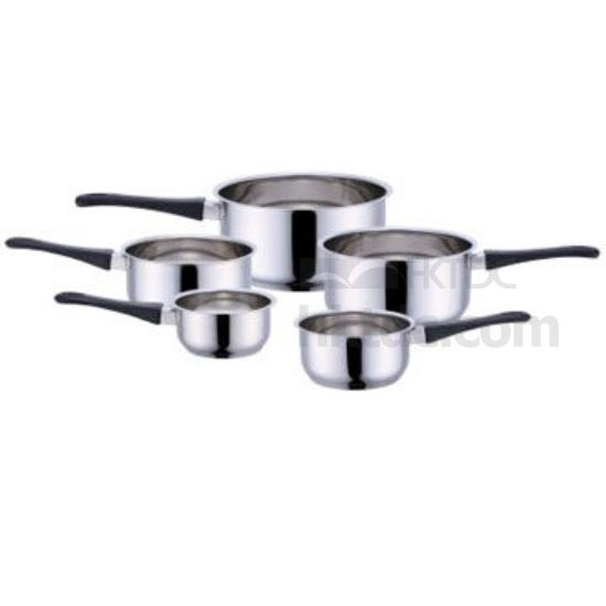 • 5 pieces stainless steel cookware set, all saucepan, heat-resistant bake lite handles, transparent glass lid for easy view while cooking, aluminum core in the bottom for good heat distribution