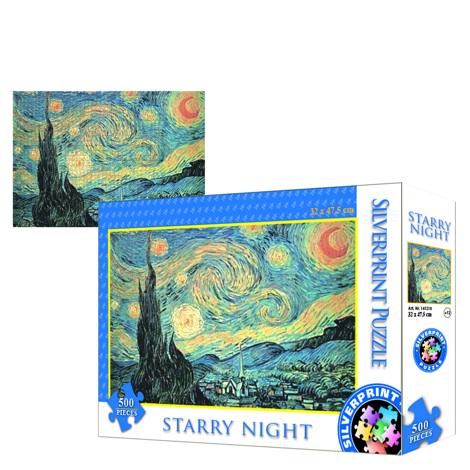This 500 Pieces Jigsaw Puzzles - Starry Night puzzle set comes in inspiration by Starry Night. It has 1000 puzzle pieces with beautiful The Starry Night. Our client can look at Starry Night graphic while playing this puzzles.