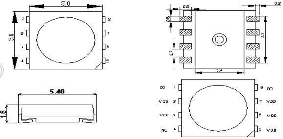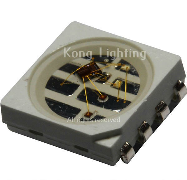 When input signal is disconnected, it can realize synchronized fixation of colorful pattern change and prevent in-operation of subsequent cascade chip caused by chip damage. Internal chip is integrated with MCU solidification program and single wire digital interface, data flip-latch, LED constant current driver, circuit, etc.
