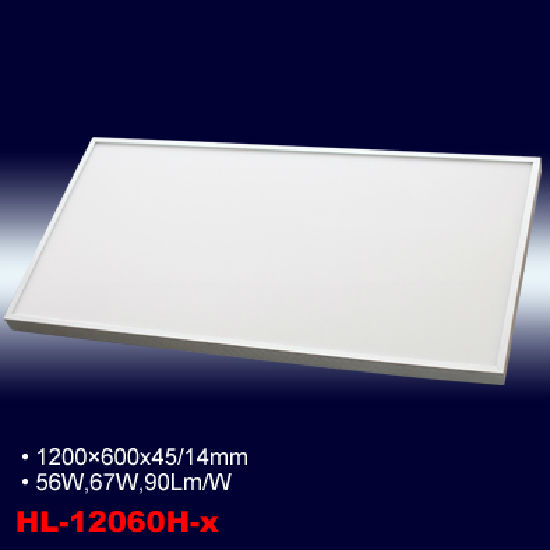 SPECIFICATION: 1) Description: 12060 56W LED ceiling panel light 2) Materials: Painted white color Aluminum house, PMMA cover 3) Light source: Epistar 0.2W 2835 SMD LED x 312pcs 4) Input voltage: 220-240VAC,50/60Hz,PF:0.95+ 5) Control: Dimmer power supply, remote control available 6) Light,sound or infrared control system available 7) Wattage: 56W 8) Output flux: 4800~5300Lm, 90Lm/W 10) View angle: 120deg. 11) Beam color (CCT): 2700K~7000K available 12) CRI(Ra): 80+ 13) Installation: ceiling light, installed by screws FEATURES: 1) Private mode, nice shape with good heat dissipation 2) Side emitting, soft and uniform light. 3) Unique light-leaking process,high luminous efficiency up to 80Lm/W 4) Instant on,No noise, No flash, No UV and IR 5) Premature failure rate at 1000Hrs.: less than 2% 6) Switching cycles: 15000+ 7) Lumens maintenance at 6000Hrs.: 85%+ 8) Operating temperature range: -25C ~ 45C 9) Long life up to more than 50,000 hours 10) Three years limited warranty 11) Comply with CE,RoHS standards CAUTION: 1) Can't be used in fully enclosed luminaires 2) Don't confuse 120V, 230V, 277V, 100~240VAC, 120~277VAC 3) IP20 protection, dry location only 4) Can get IP54 for damp location when special produced