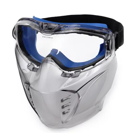 The 5959 protective eyewear combines functionality, comfort, and versatility. Its innovative design features a detachable face mask, providing enhanced protection and adaptability for various applications. The goggles are crafted with a combination of hard and soft material components, ensuring maximum wearer comfort—never pressing or pinching, even during extended use. The flexible, patented rubber frame adapts seamlessly to the wearer’s face, delivering full side protection for the eye area, including for those who wear glasses.