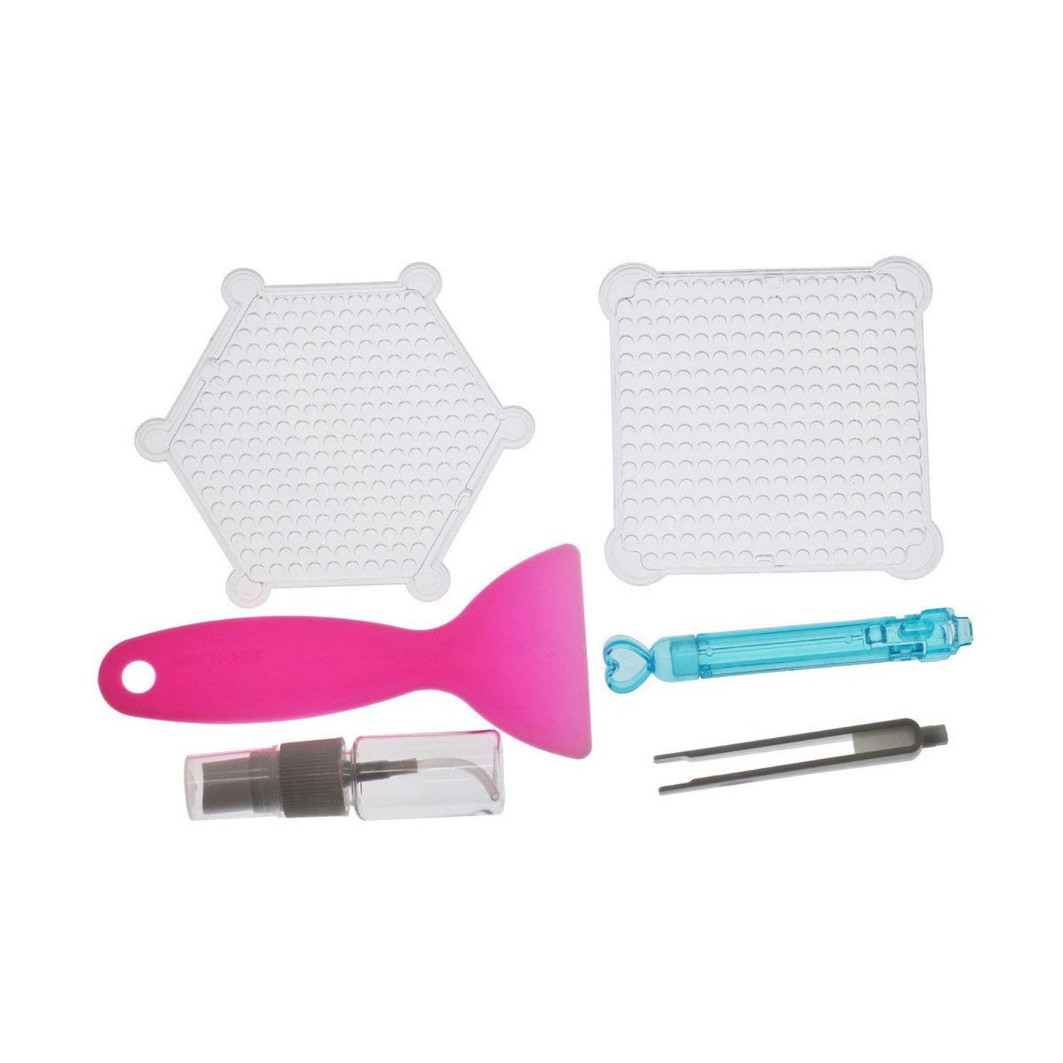 This kit includes 2 layout trays, 5 key rings, 5 lanyards, some small iron rings, sprayer, clip, scoop, 2200 classic beads, bead pen , colorful patterns and instructions!