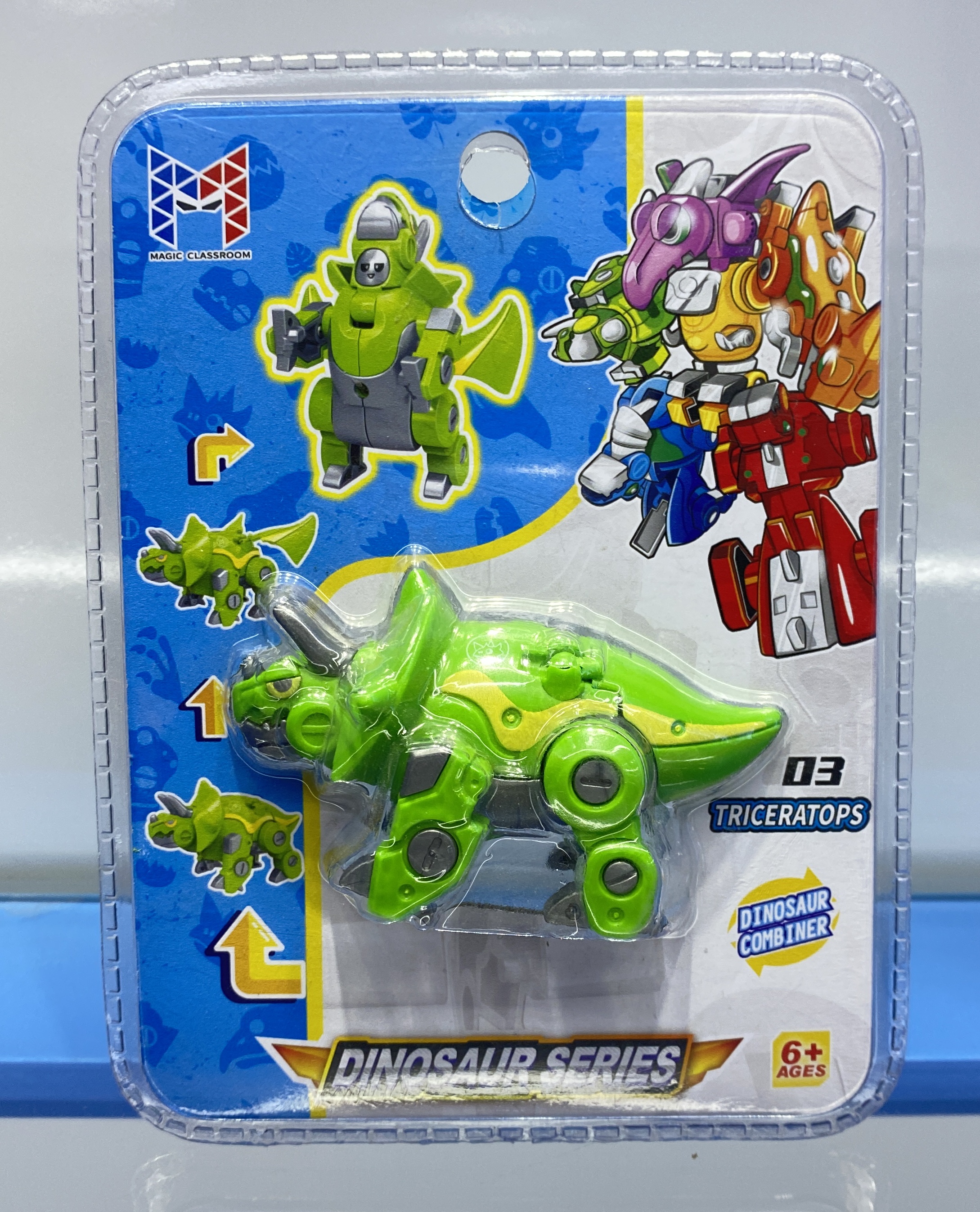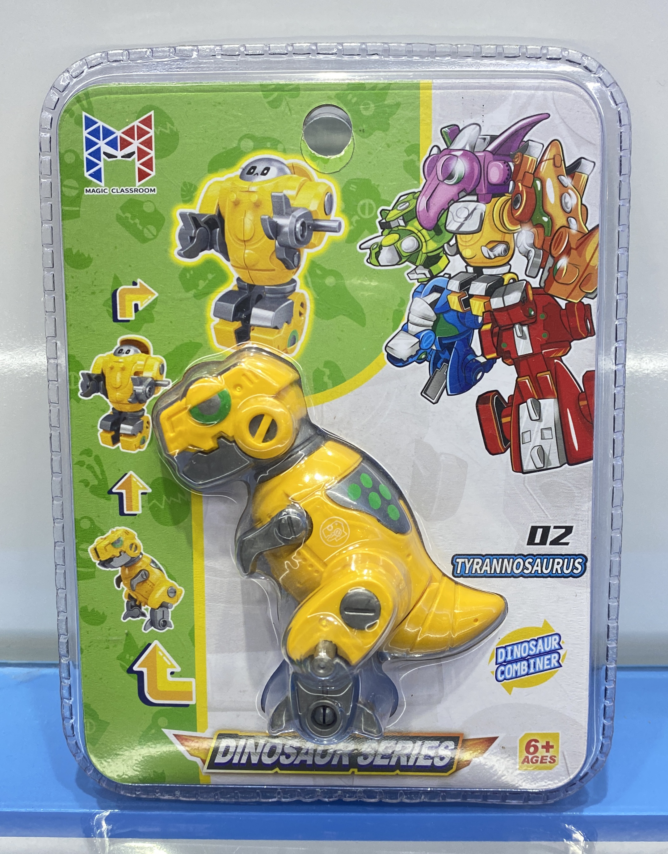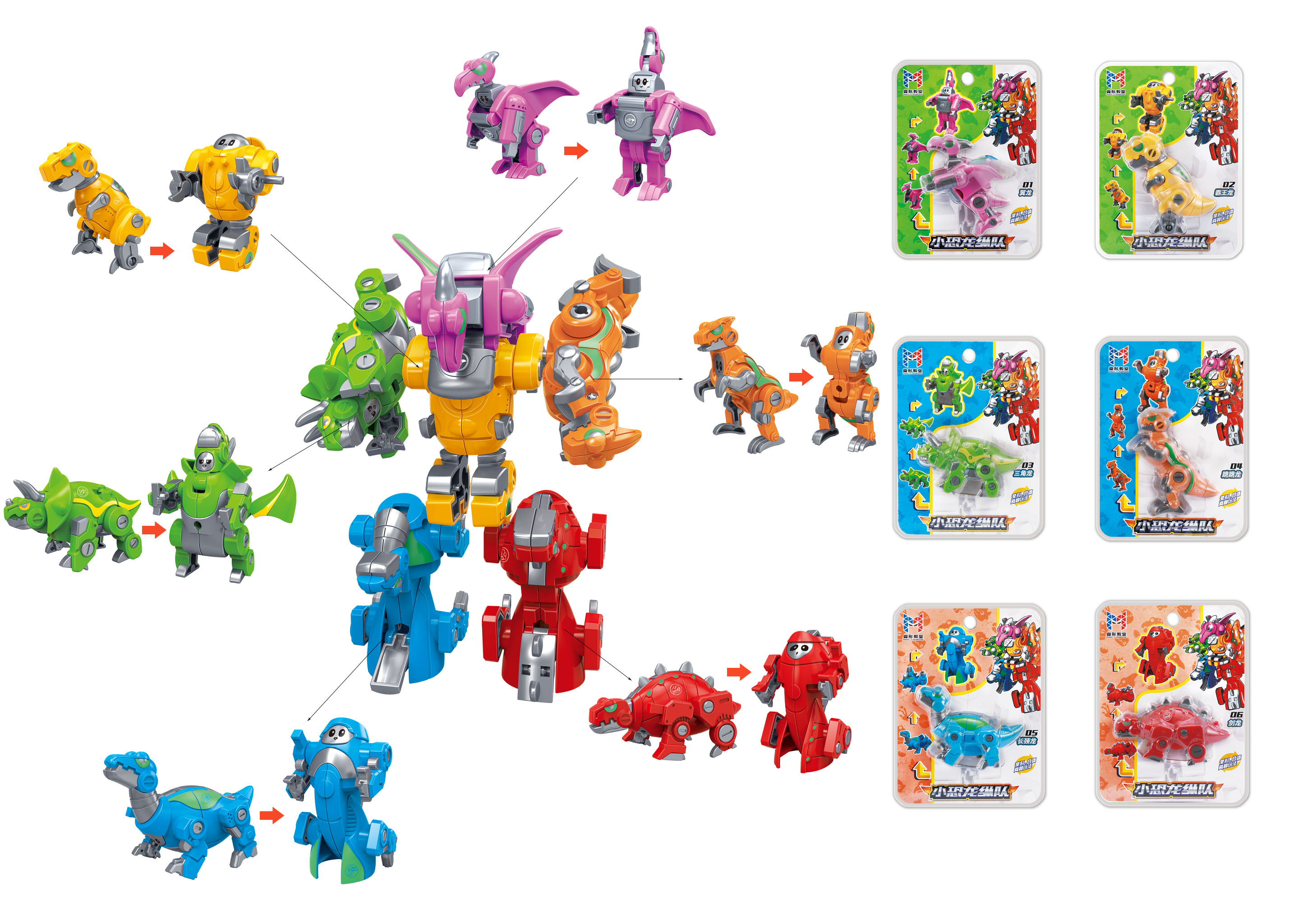 Each small dinosaur can be built into a small robot. Combine all 6 items can build a big robot.