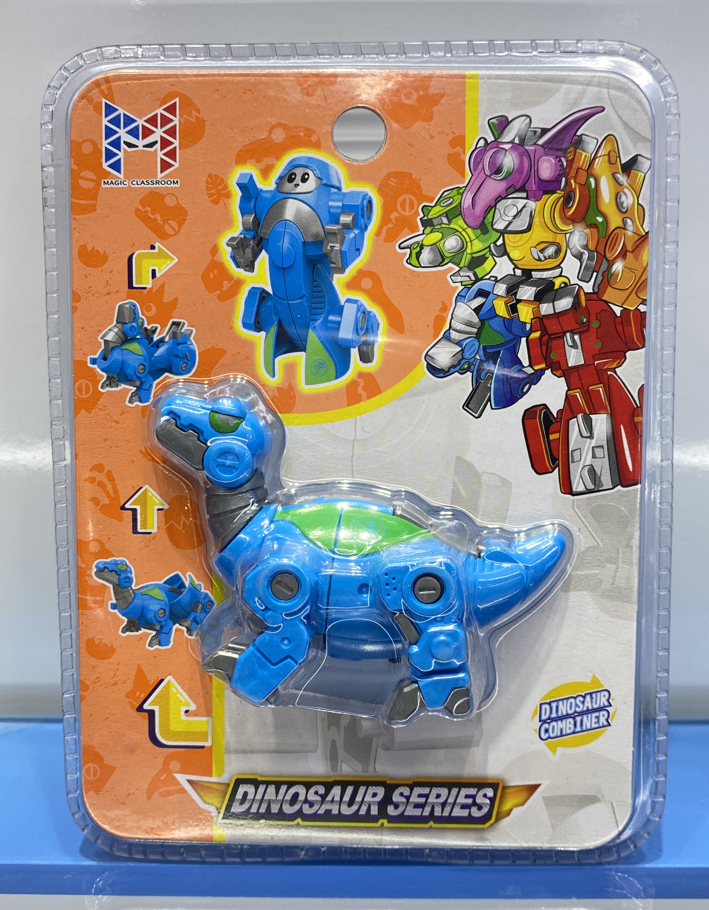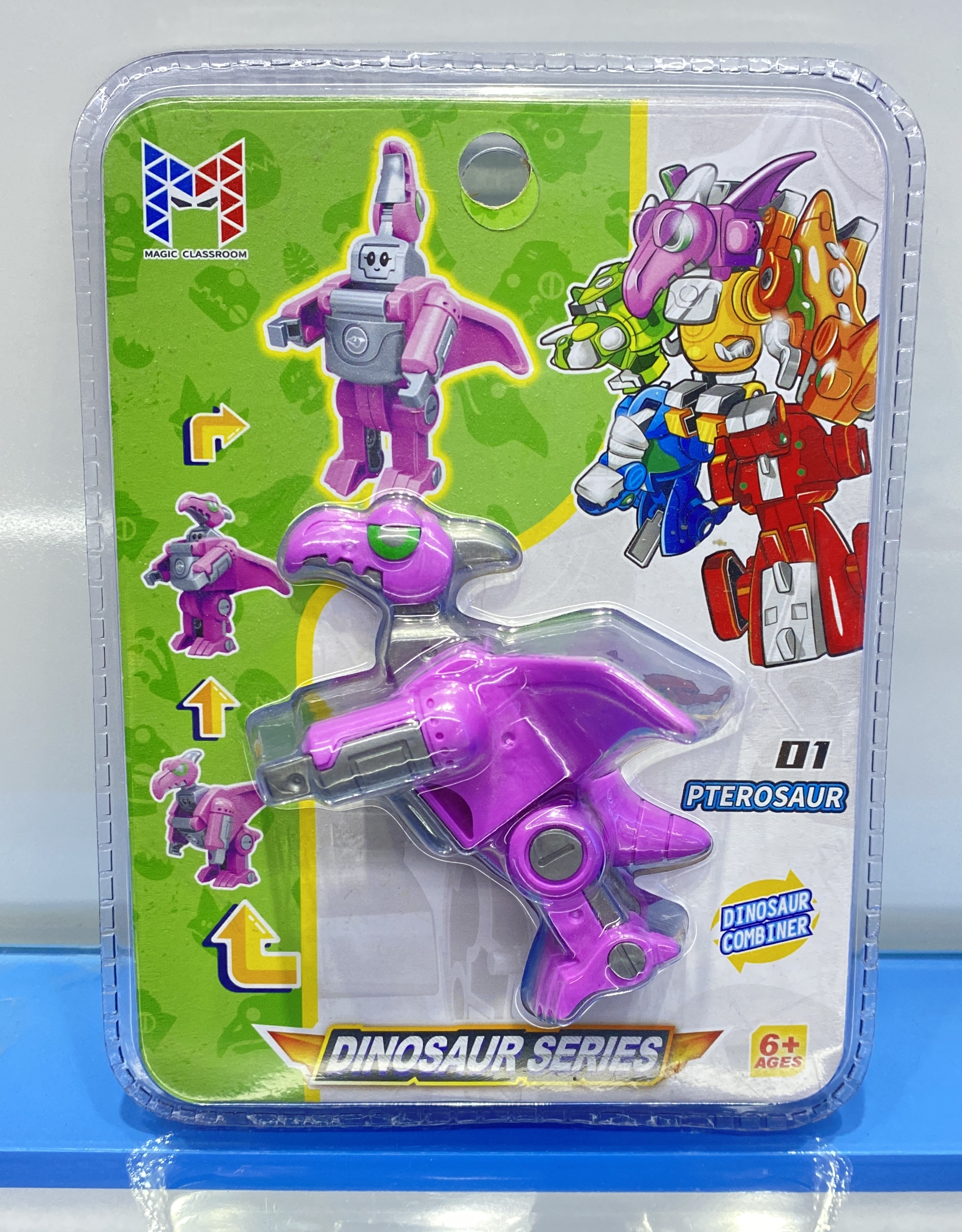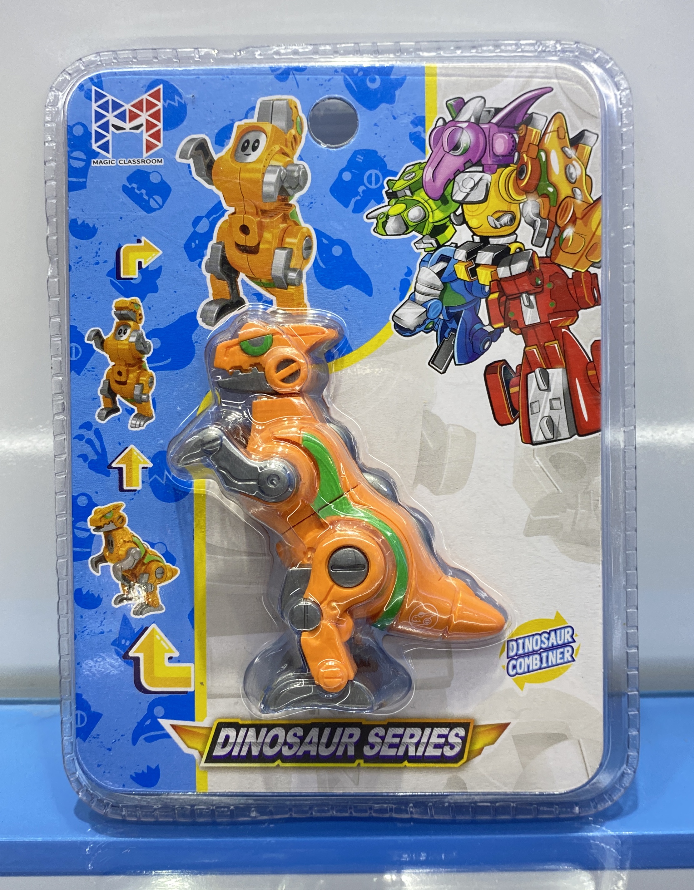Each small dinosaur can be built into a small robot. Combine all 6 items can build a big robot.