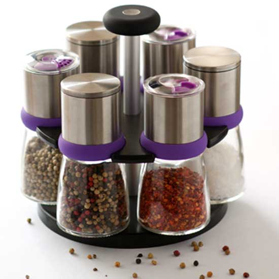 This spice mill set includes six delicate and exquisite spice mills with matt-finished lids. The set comes with an orbit spice rack which offers improved convenience. Enjoy food preparation with this excellent spice mill set.