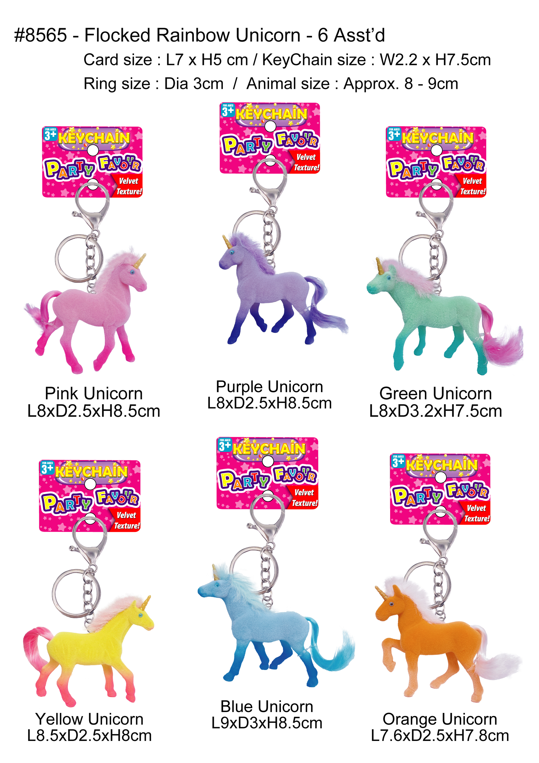 #8565 Flocked Rainbow Unicorn Keychain Series