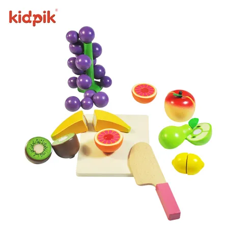 One set has 1 Pc chopping block, 1 pc knife, 7 kinds of fruits. Through kitchen pretend play of fruits cutting which can exercise child's hand and brain coordination, improve baby's understanding and thinking, training sensory cognition.
