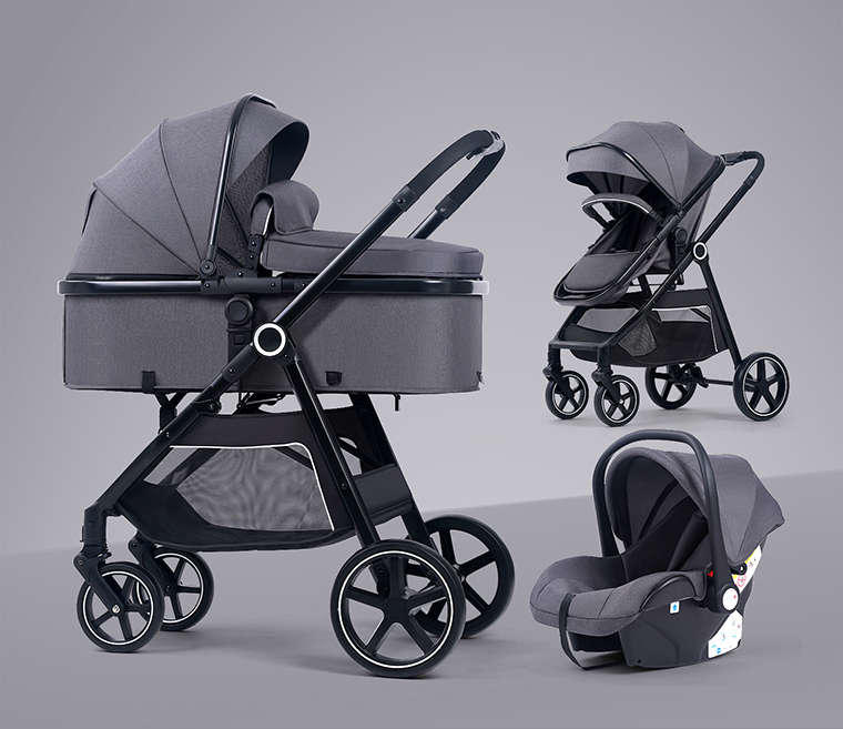 619-2 Baby Stroller 3-in-1 Foldable Pram Buggy & Car Seat Easy folding