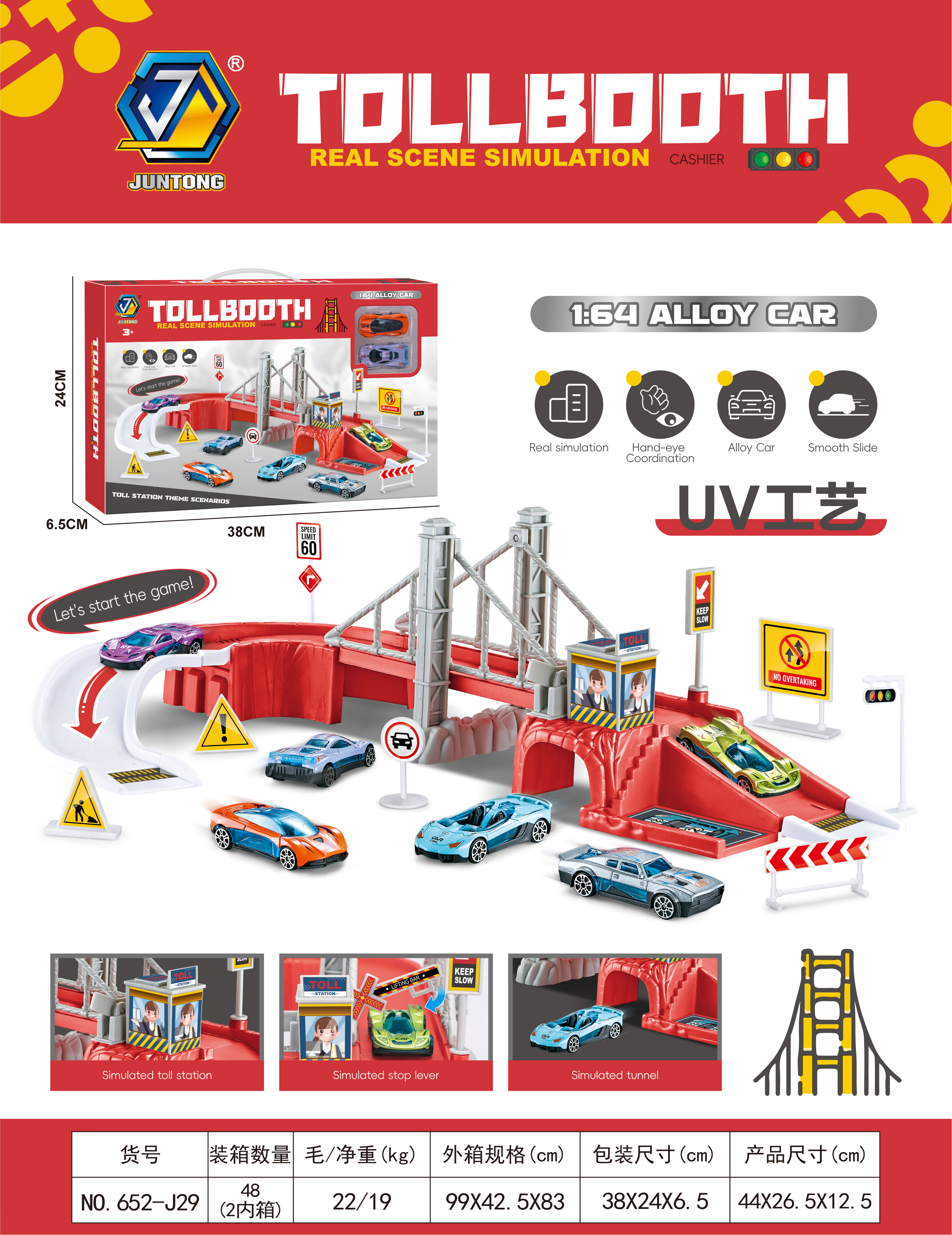 Toll station parking lot with 2 free wheel alloy cars