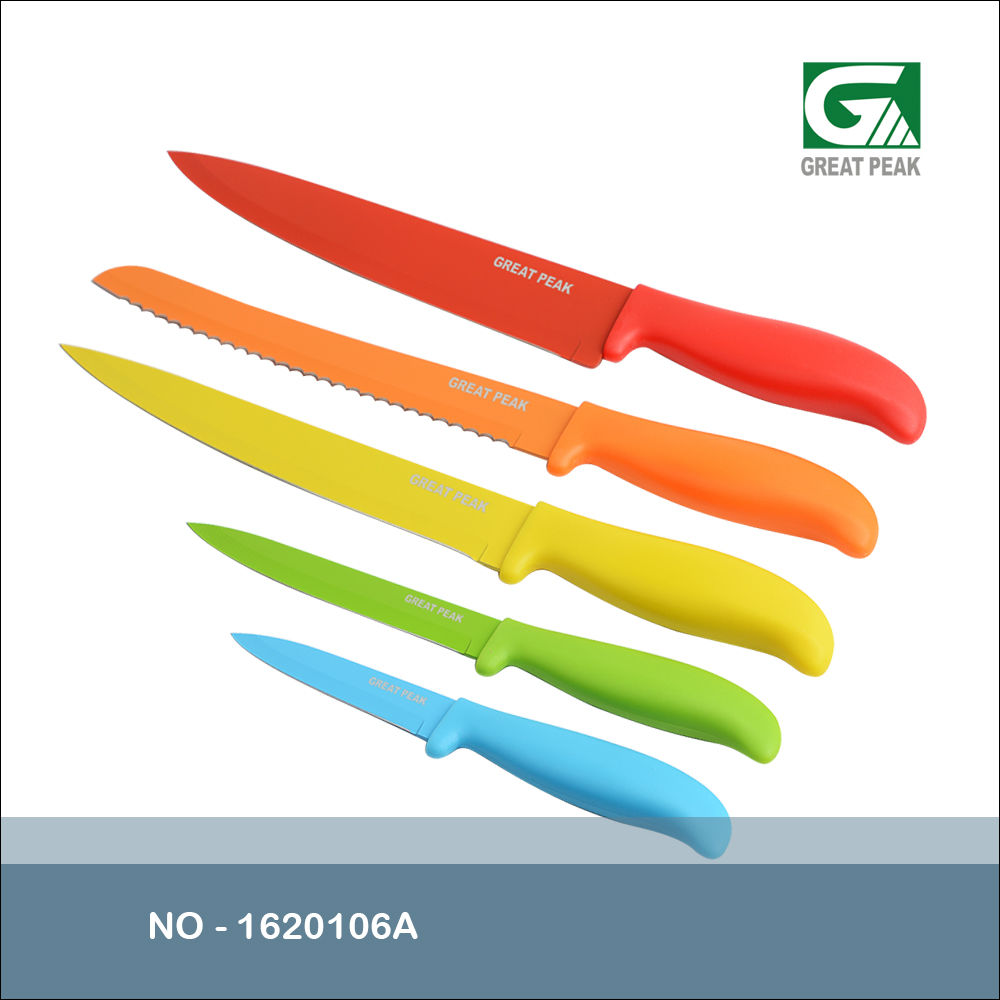 6pcs Colorful Non-Stick Coating Knife Set With Cutting Board