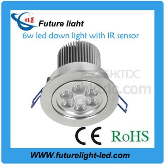 LED down lights with IR have special sensor detecting brightness surrounded and body temperature, it will be bright for about 50 to 60 seconds when people come near within 4 to 8 meters on condition that the illumination outside is under 10LX, this function closes automatically when the illumination is over 10LX, totally not affected by noise or surrounding factors