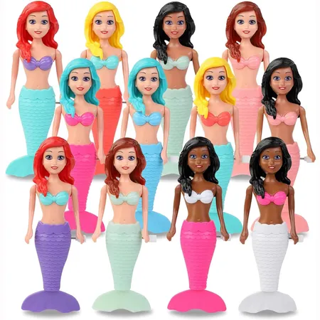 1. WIND UP & GO: Splash and swim with a pack of mermaids! This wind-up toy set of 12 pretty mermaids will bring hours of fun to kids and adults. Just turn the knob to watch the tail flap under water and see the mermaid swim! No batteries required! 2.PERFECT SIZE: Each mermaid measures about 7.2” in length, making them an excellent size for kids and toddlers little hands. Plus, they can be used in the water for endless fun and imaginative play. 3.POSABLE: The swimming mermaids are posable with articulated arms. Great for bath time play and at the pool. Make a splash all summer long! Wind up toys are a great way to develop fine motor skills in young kids. 4.QUALITY MATERIALS: These wind-up mermaid toys are made with durable plastic and built to last. For proper care, dry the toy with a towel and store it in a dry storage area after each use. 5.PARTY FAVORS: Perfect for kids birthday party favors, gifts, pinata fillers, carnival prizes, treasure box prizes, classroom incentive rewards, Christmas stocking stuffers, Easter egg fillers, and more!