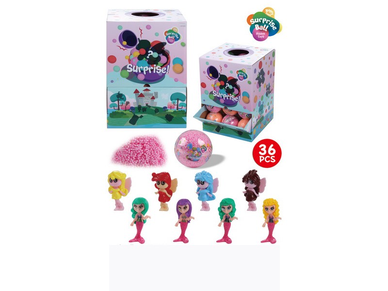 7.5 cm surprise ball w/4 cm diy cartoon mermaid,8 asstd, 6 col ball-pink/blue/green/purple/orange/yellow