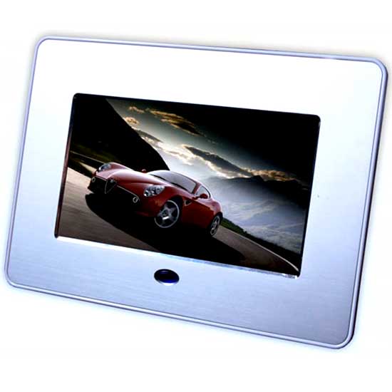 The 7” digital photo frame features an easy-to-control interface with 5 buttons. It offers automatic slide shows with multiple transition effects. Calendar and digital clock functions are included as well. Show your favorite vacation photos in style with this contemporary digital photo frame.