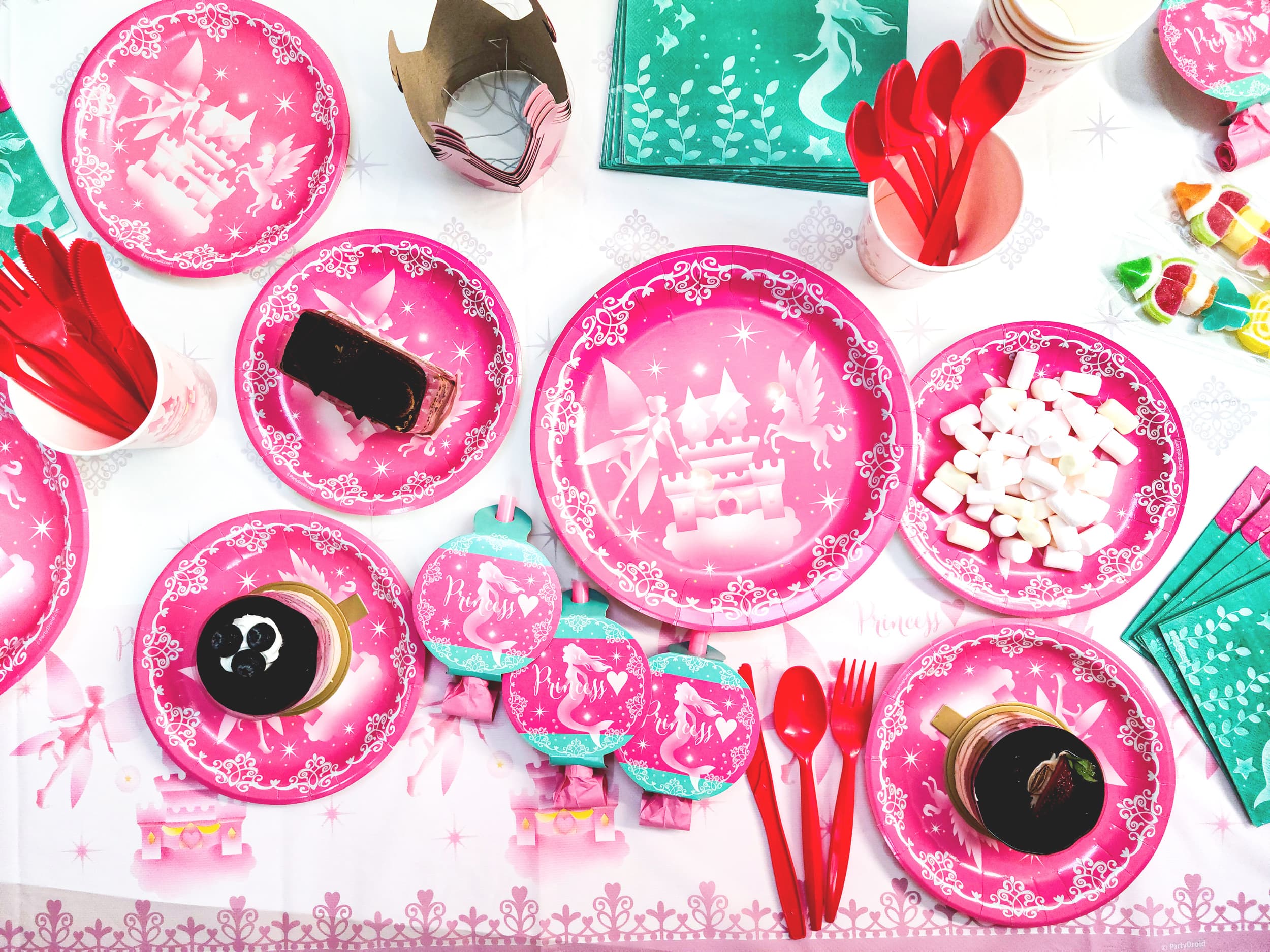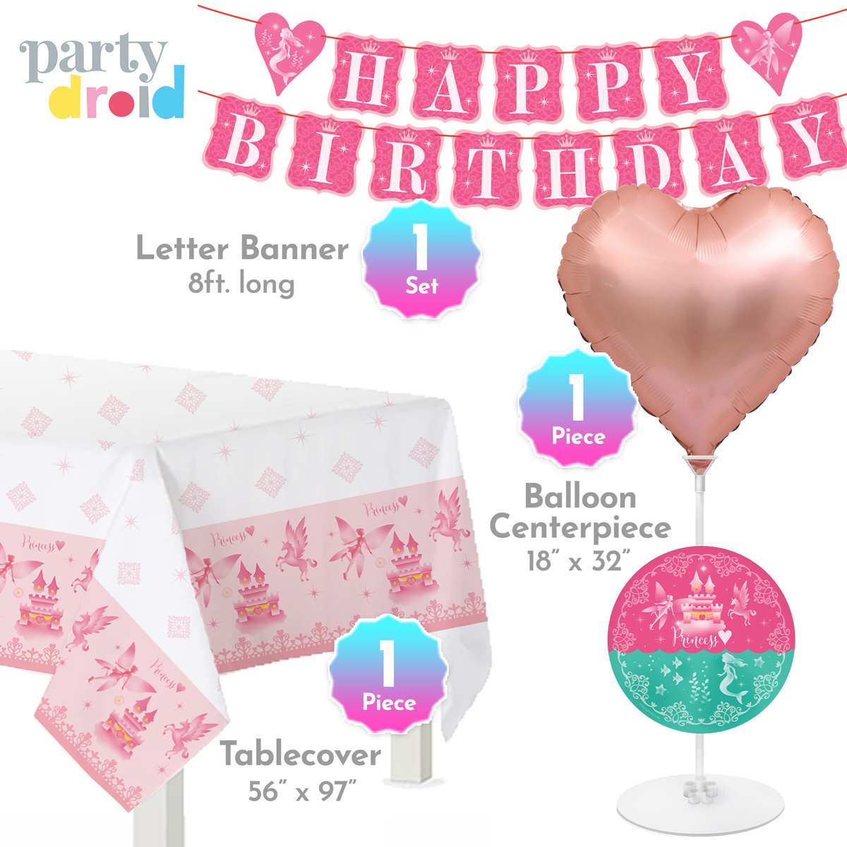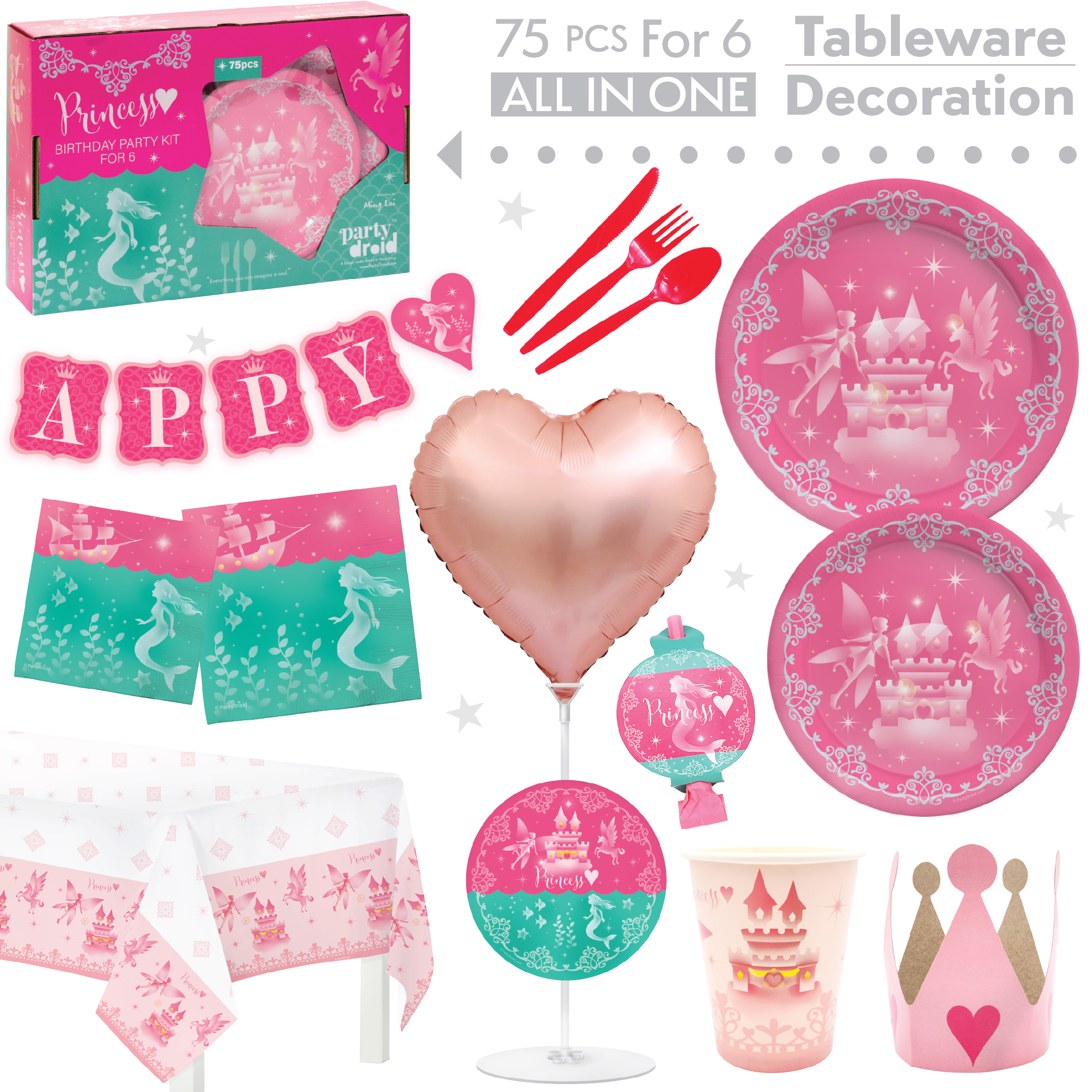 75Pcs Unicorn & Princess Birthday Party Supplies Set Dinnerware Decorations for 6 Guests Disposable Kit Tablecloth Paper Plates Napkins Cups Hats Blowouts Letter-Banner Balloon Centerpiece Cutlery