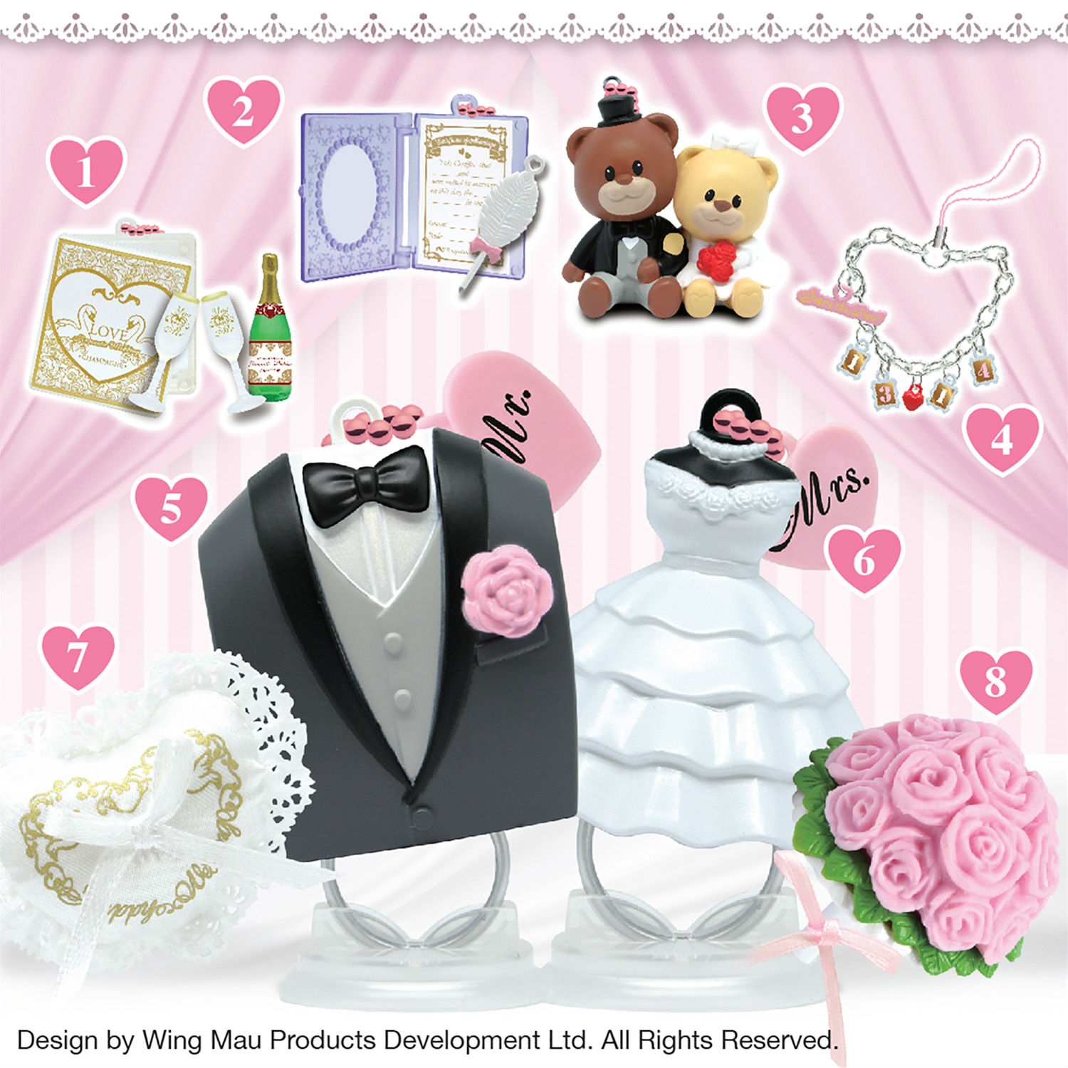 - Material: ABS, NP-PVC -Packing: Each PC in PB; 100PCS in large PB; 500PC/1000PC/4.0' -Optional choice for packing in IC6368 capsule & Box Set -(1)Champagne Glasses Box Set (2)Wedding Feather Pen & Marriage Certificate Holder (3)Wedding Bear Dolls (4)Save the Date Sign (5 & 6) Wedding Ring Box (Groom & Bride) (7)Wedding Ring Pillow (8)Flower Bouquet