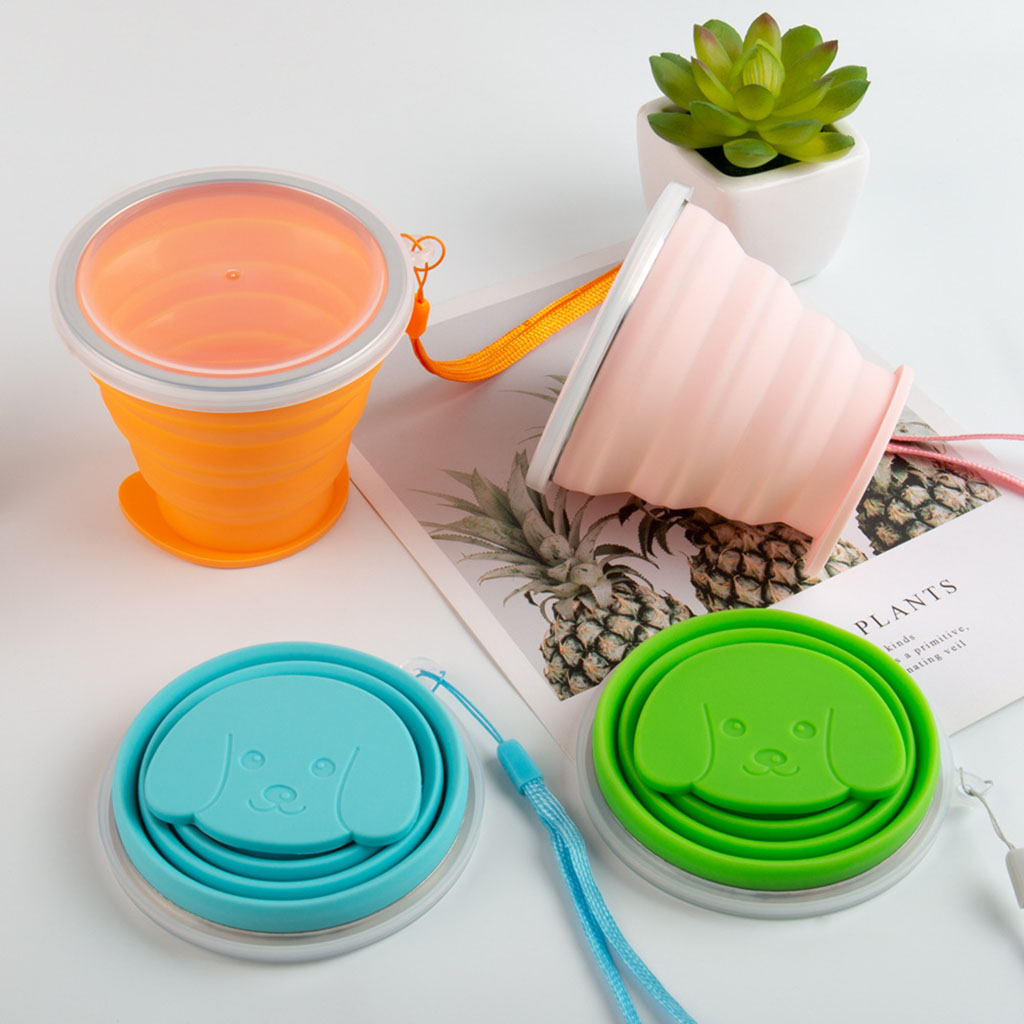 80 ml Round-shaped Silicone Folding Cup w/ Puppy Widen Base