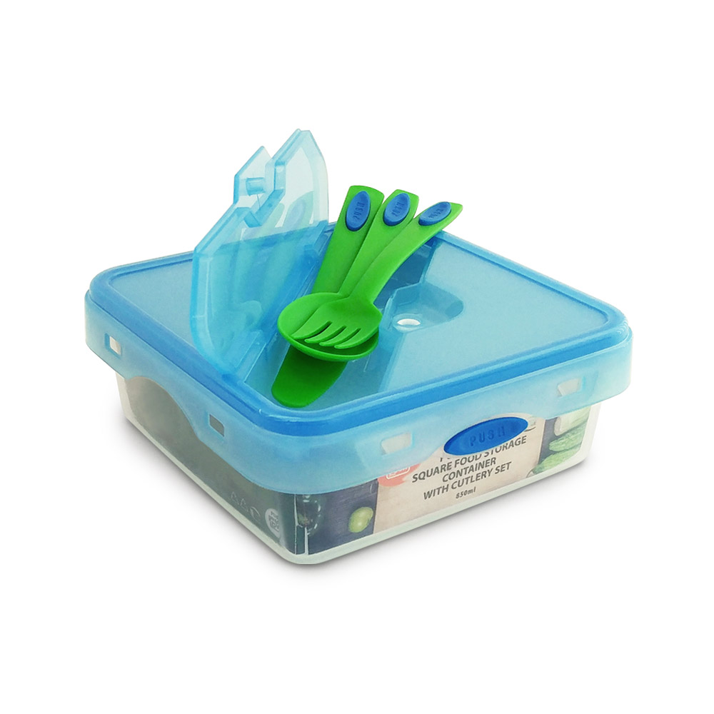 850 mL Square Food Storage Container with Cutlery Set
