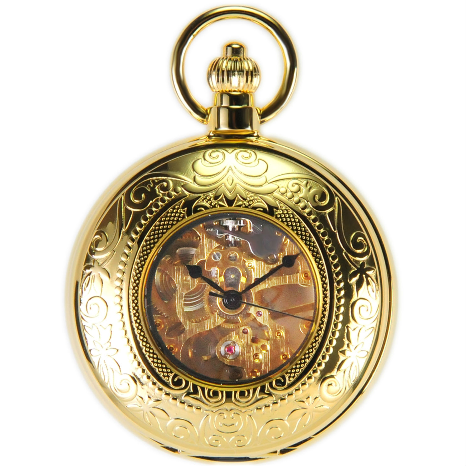 Single cover pocket watch. Mechanical movement. See-through front cover.