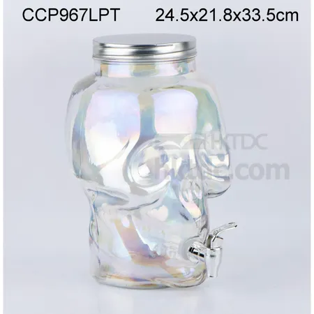 8L glass beverage dispenser with tap and metal screw lid with pearl color