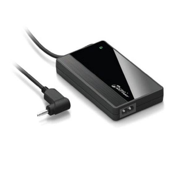 Pictured is a high-quality 90W AC adapter with an ultra-slim profile. The high-glossy and hair-lined surface offers modern elegance. This AC adapter suits over 95% of compatibility for laptops in the world.