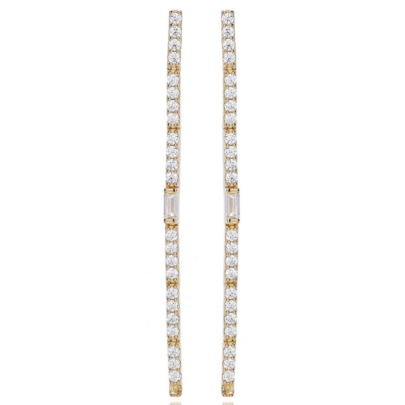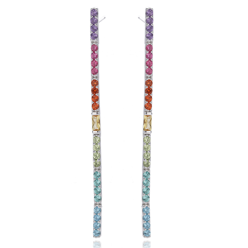 925 Baguette And Round Rainbow Cubic Zircon Rhodium Silver Earring