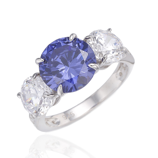 925 Round Tanzanite And White Cubic Zircon Rhodium Silver Ring