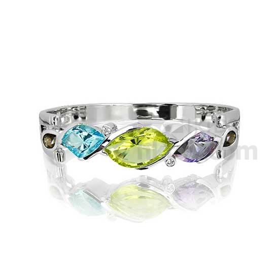 This 925 silver bangle is finely crafted with exquisite details. It is accented with fancy gemstones such as lemon citrine, blue topaz, amethyst and smoky quartz gemstones. This fine silver jewelry is an ideal addition to complete your jewelry box.