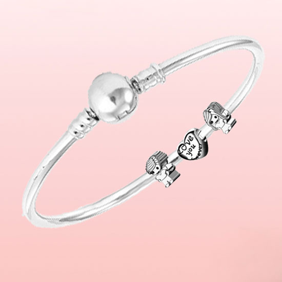 This is a 925 silver bangle that comes with a high-gloss finish. It is accented with cute charms for a decorative touch. This fashionable bangle is easy to mix and match with your outfit.