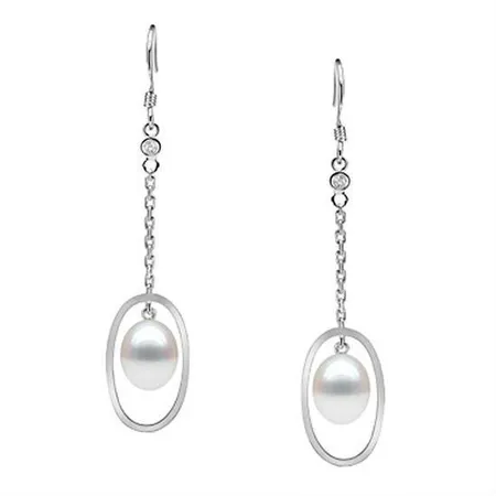A freshwater pearl dropping at the end of the chain framed with an oval loop.