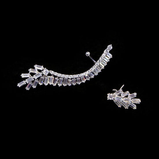 This is a pair of 925 silver earrings with a fashionable appearance. The earrings are crafted with dazzling cubic zirconia stones for an elegant touch. This pair of silver earrings is a great addition to complete your jewelry box.