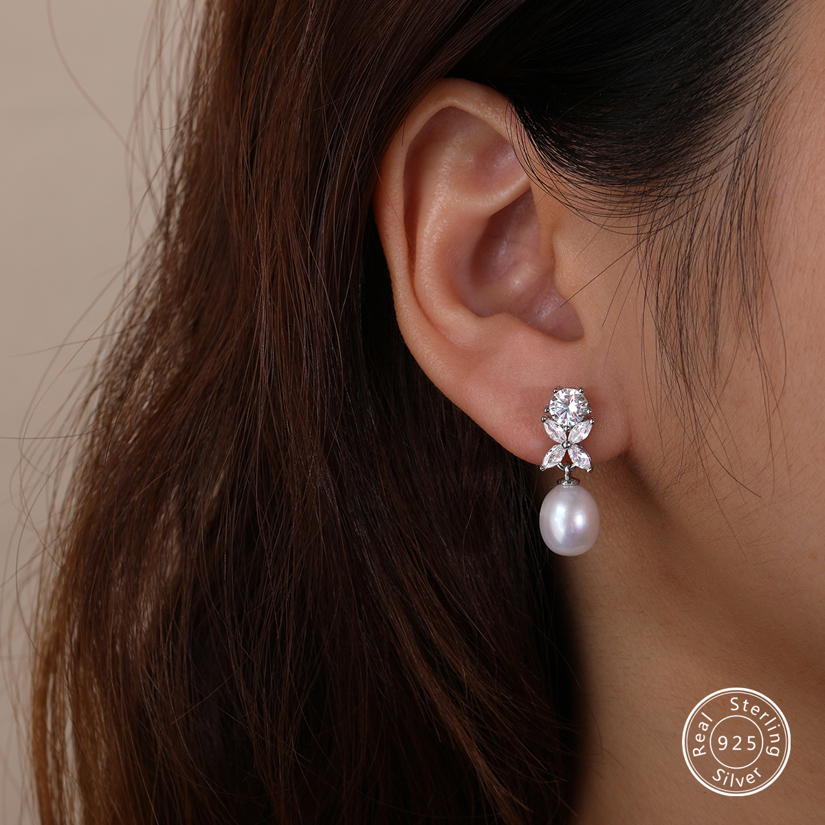925 Silver Freshwater Pearl CZ Drop Earrings - Durable & Shiny - Ideal for Wedding Jewelry Wholesale