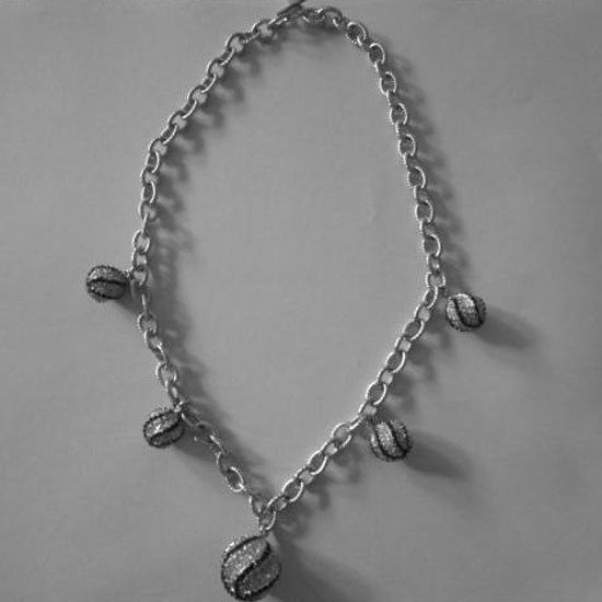This 925 silver link necklace features ball-shaped charms decorated with sparkling stones. Delicate swirl patterns in black adorn the charms with extra detail. This sweet and modern necklace is a fancy accessory for the day and the night.
